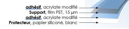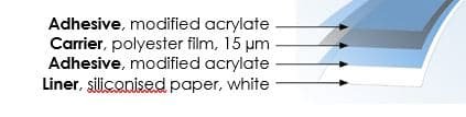 Doppelseitiges Klebeband auf Basis eines modifizierten Acrylatklebstoffs, der auf eine Polyesterfolie aufgebracht ist.
